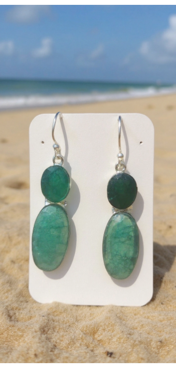Set in a sleek .925 silver-tone frame with hook closures, they offer a bold yet versatile look that pairs beautifully with both casual outfits and evening wear. Their rich green hues reflect light in a way that feels organic, grounding, and effortlessly chic.